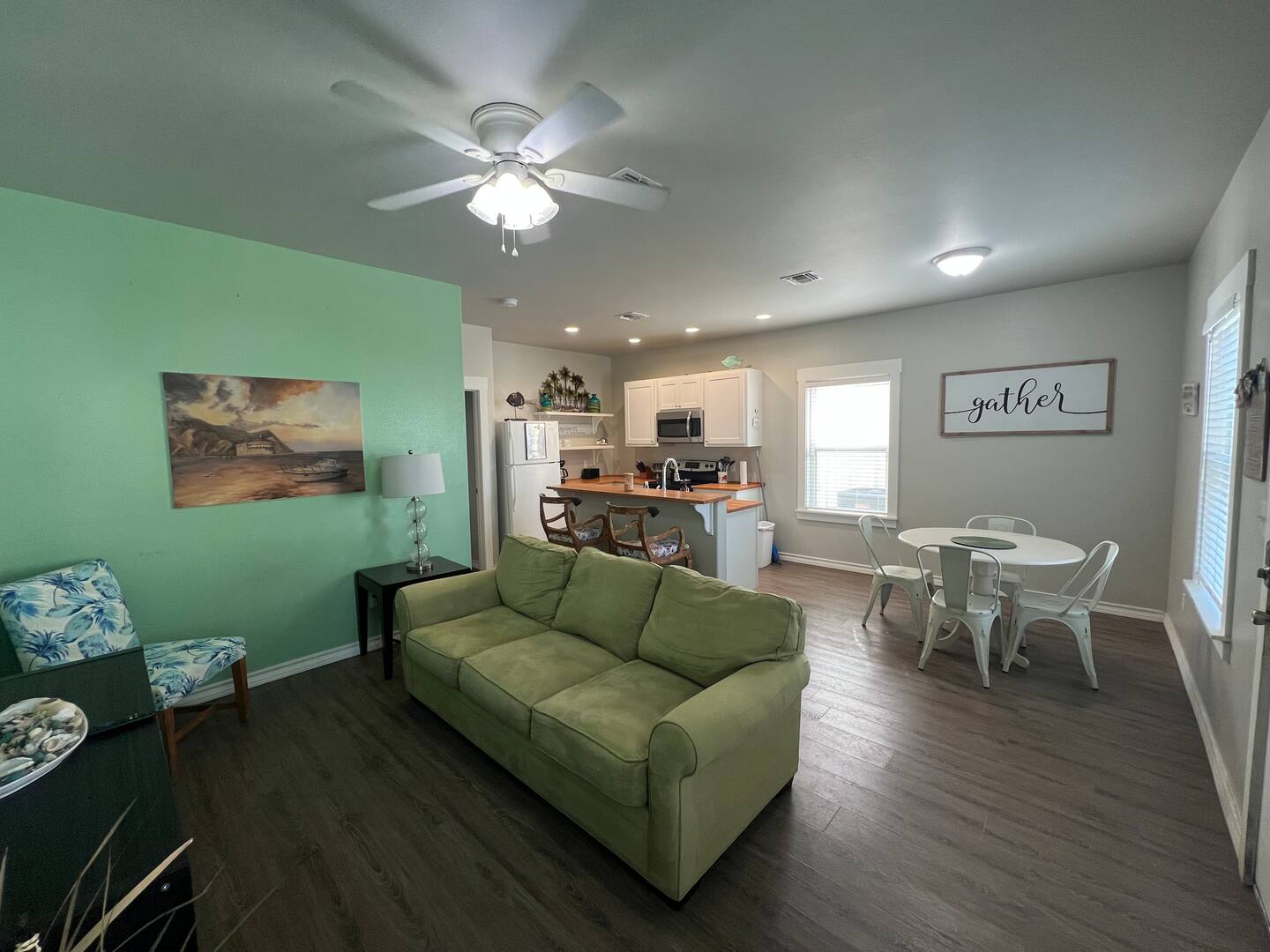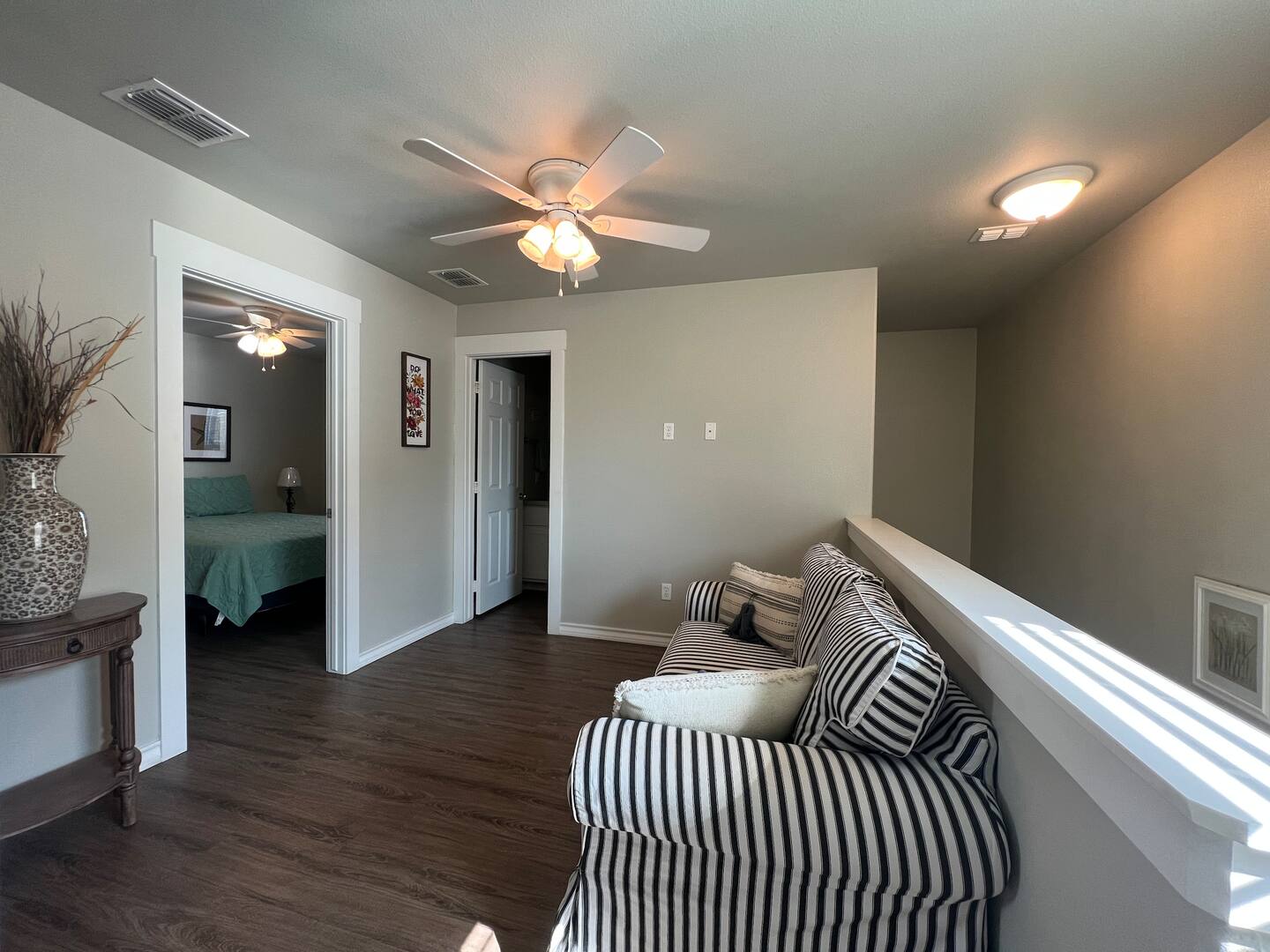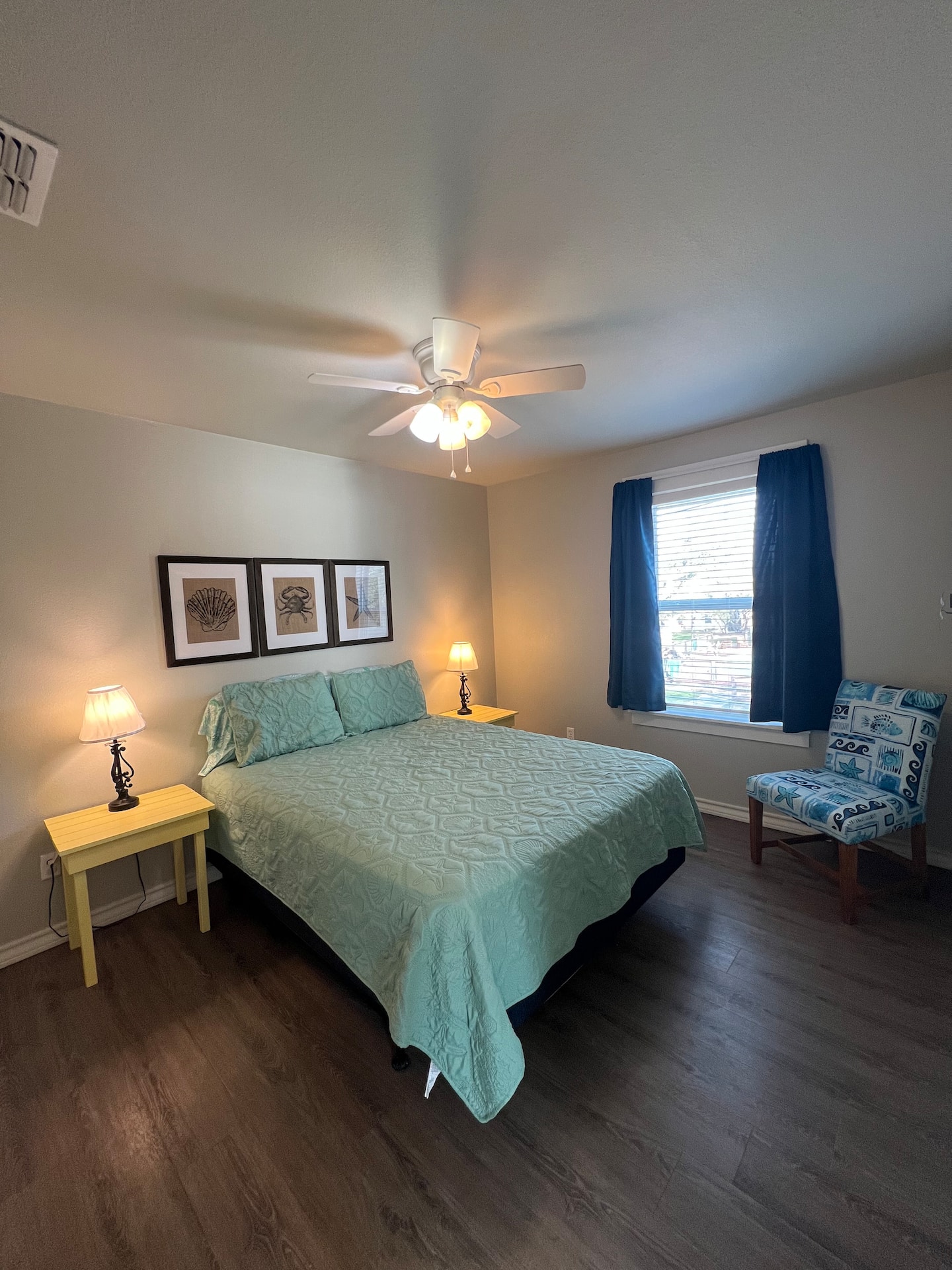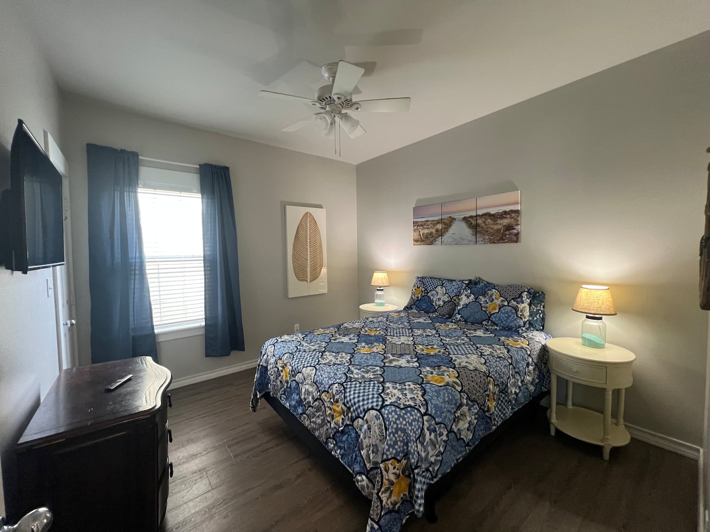This coastal cottage features 3 bedrooms and 2 baths, accommodating up to 6 guests. It is located right across from the community pool and is fully equipped for all your needs.