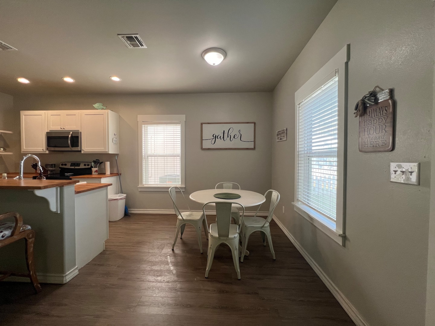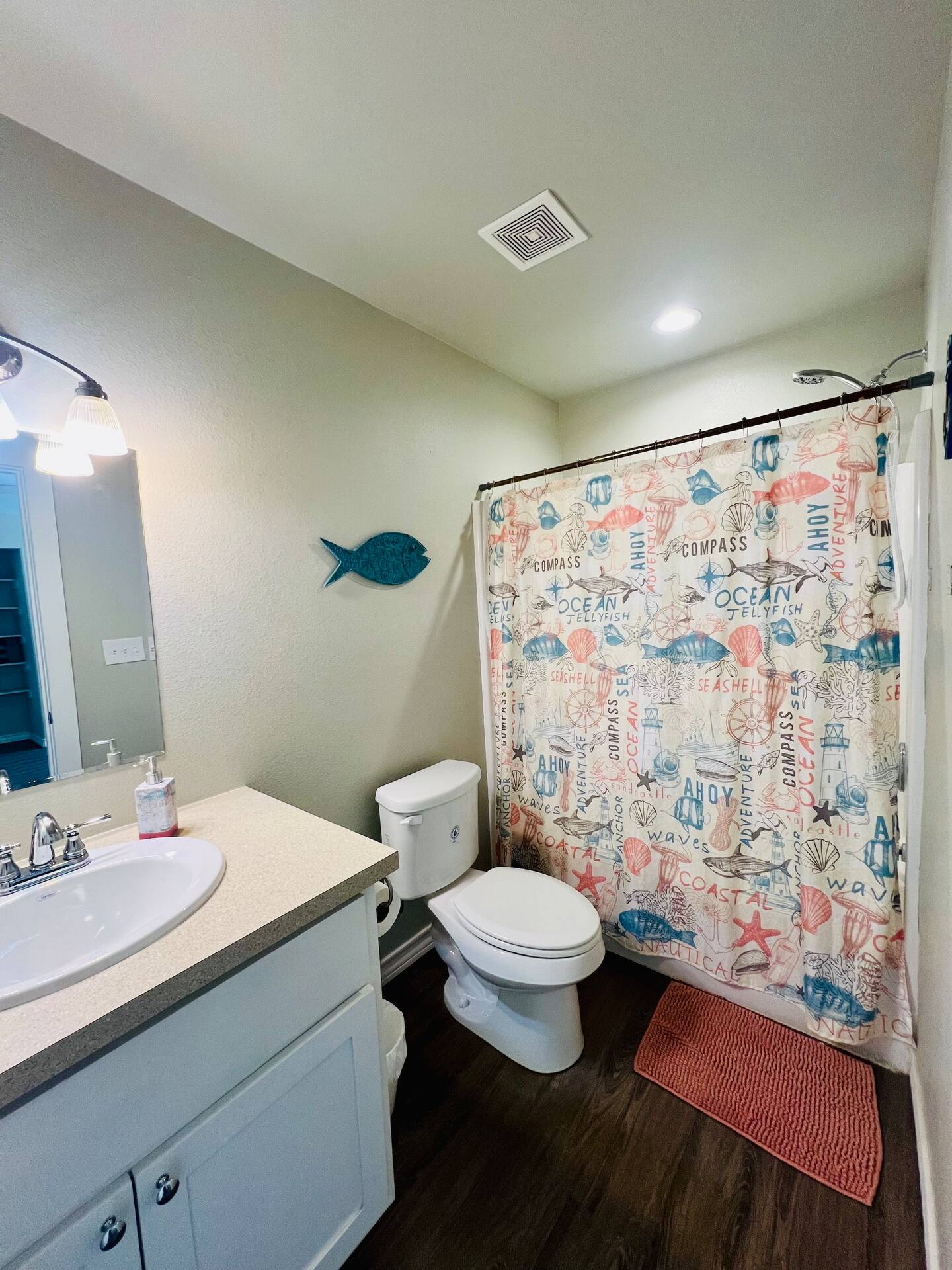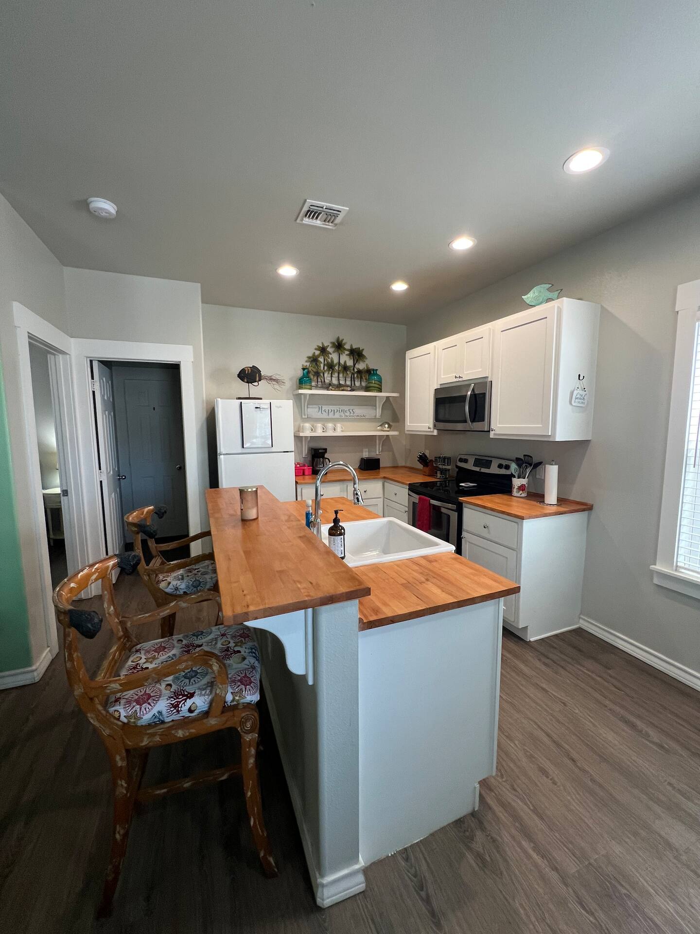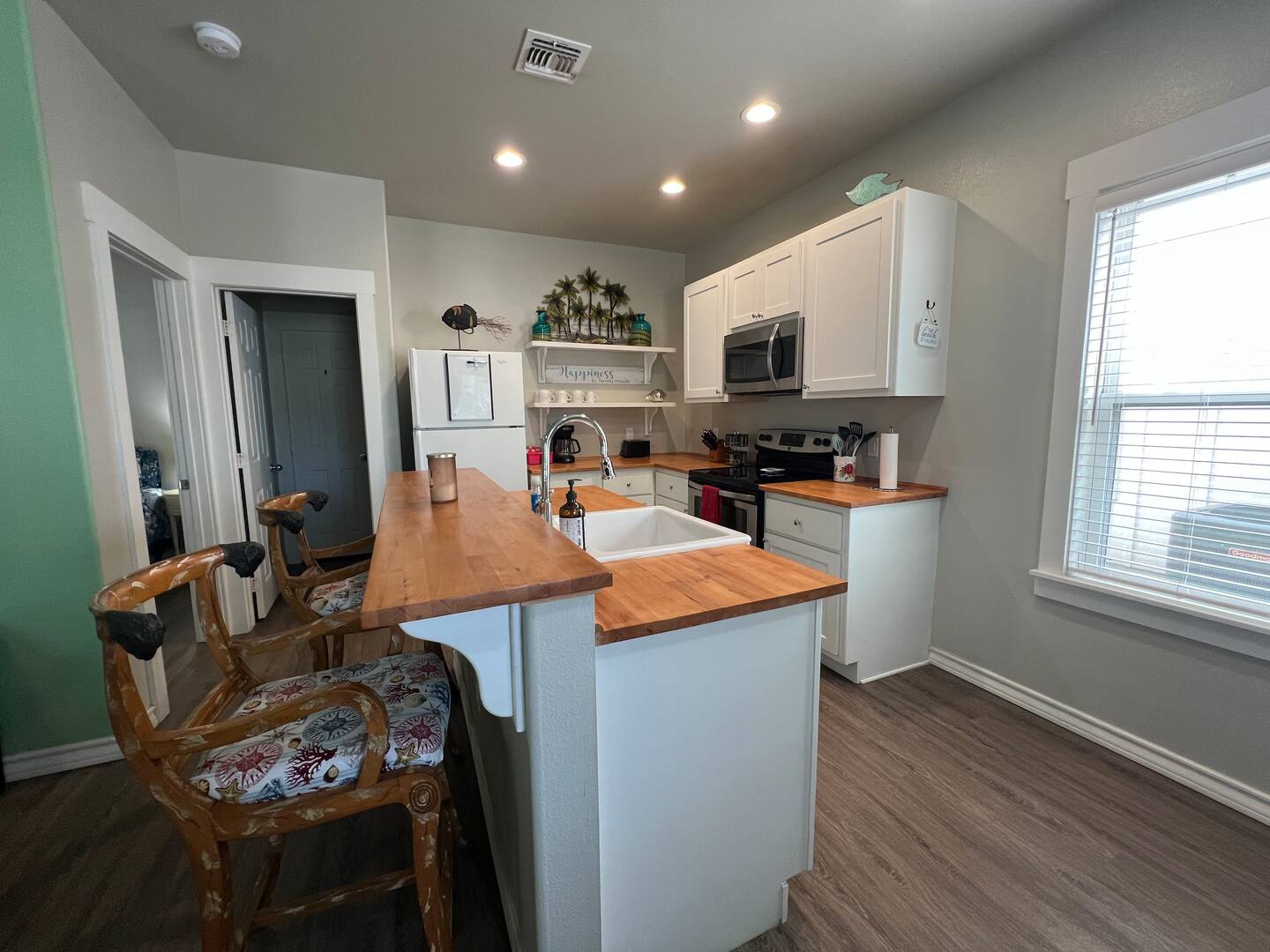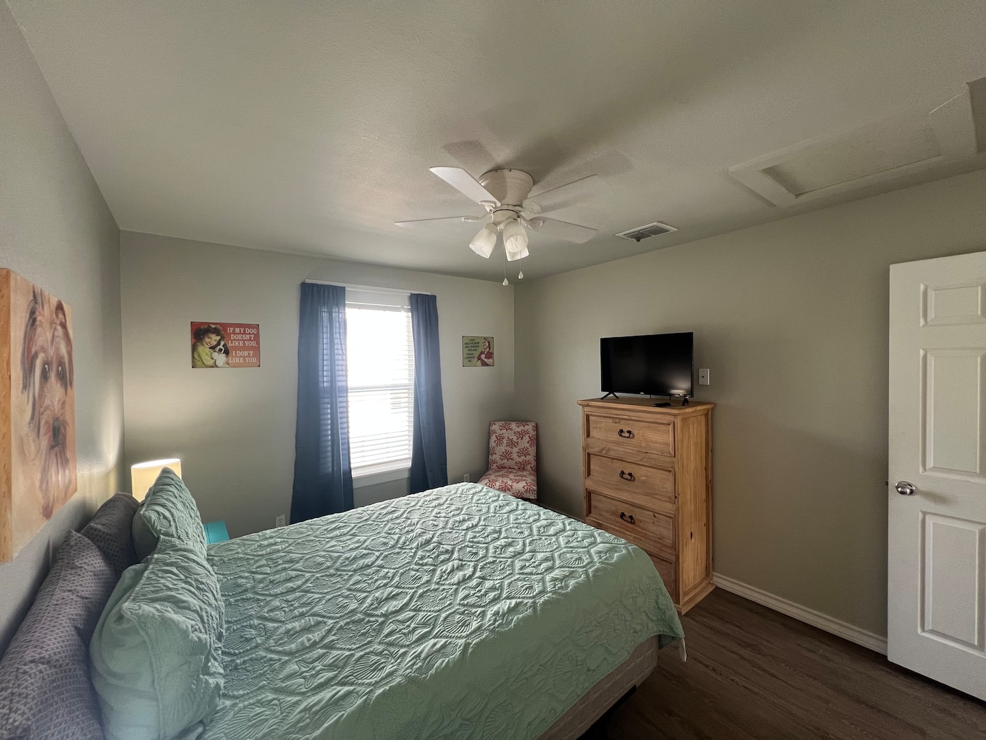 This coastal cottage features 3 bedrooms and 2 baths, accommodating up to 6 guests. It is located right across from the community pool and is fully equipped for all your needs.