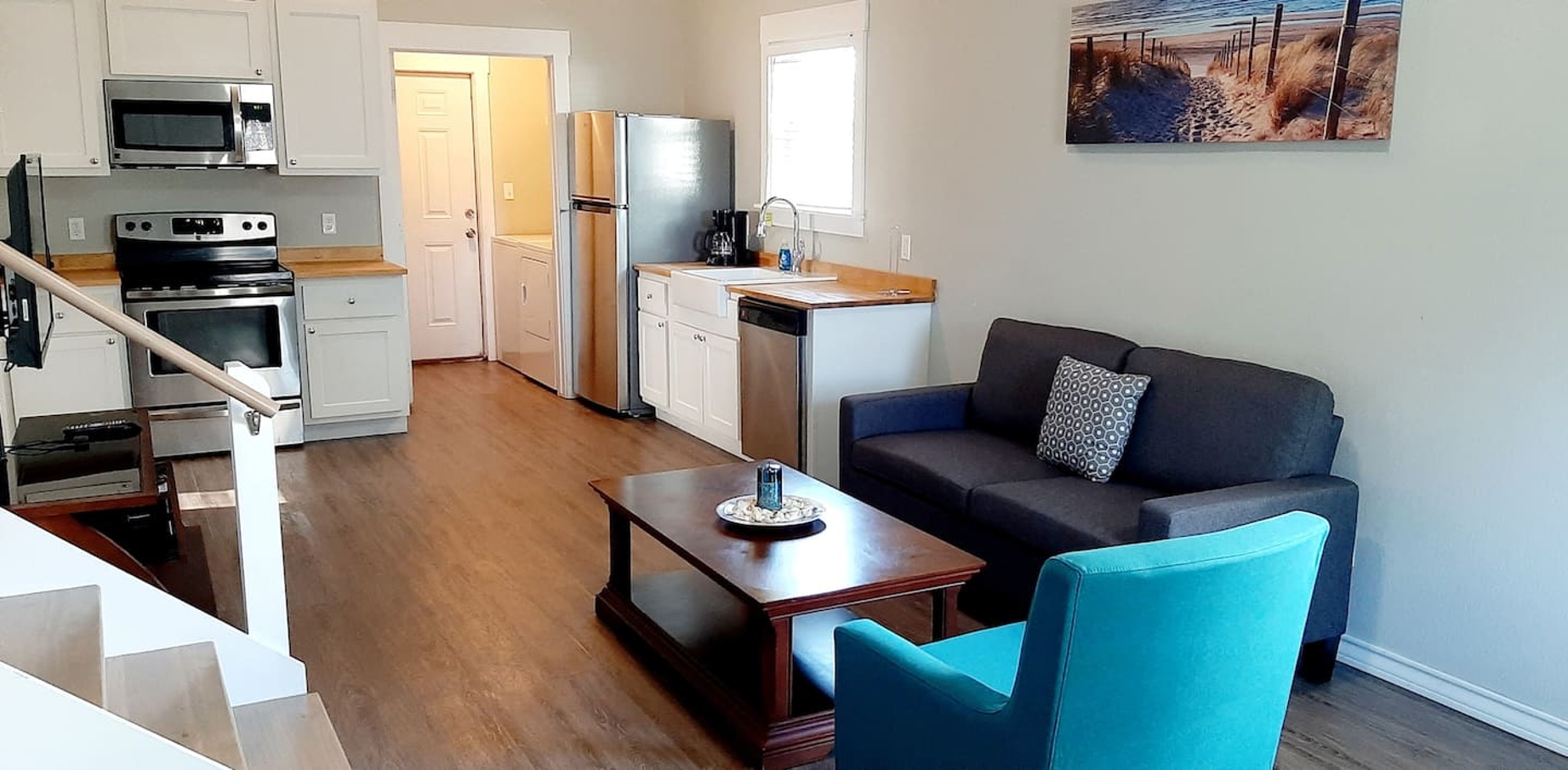 Nestled in the southern section of Rockport Cottage Company, The Coastal Bungalow is the perfect retreat for guests seeking a comfortable and extended stay. This spacious 2-bedroom, 2-bathroom bungalow features an airy loft, providing additional sleeping space, and accommodates up to six guests with ease.