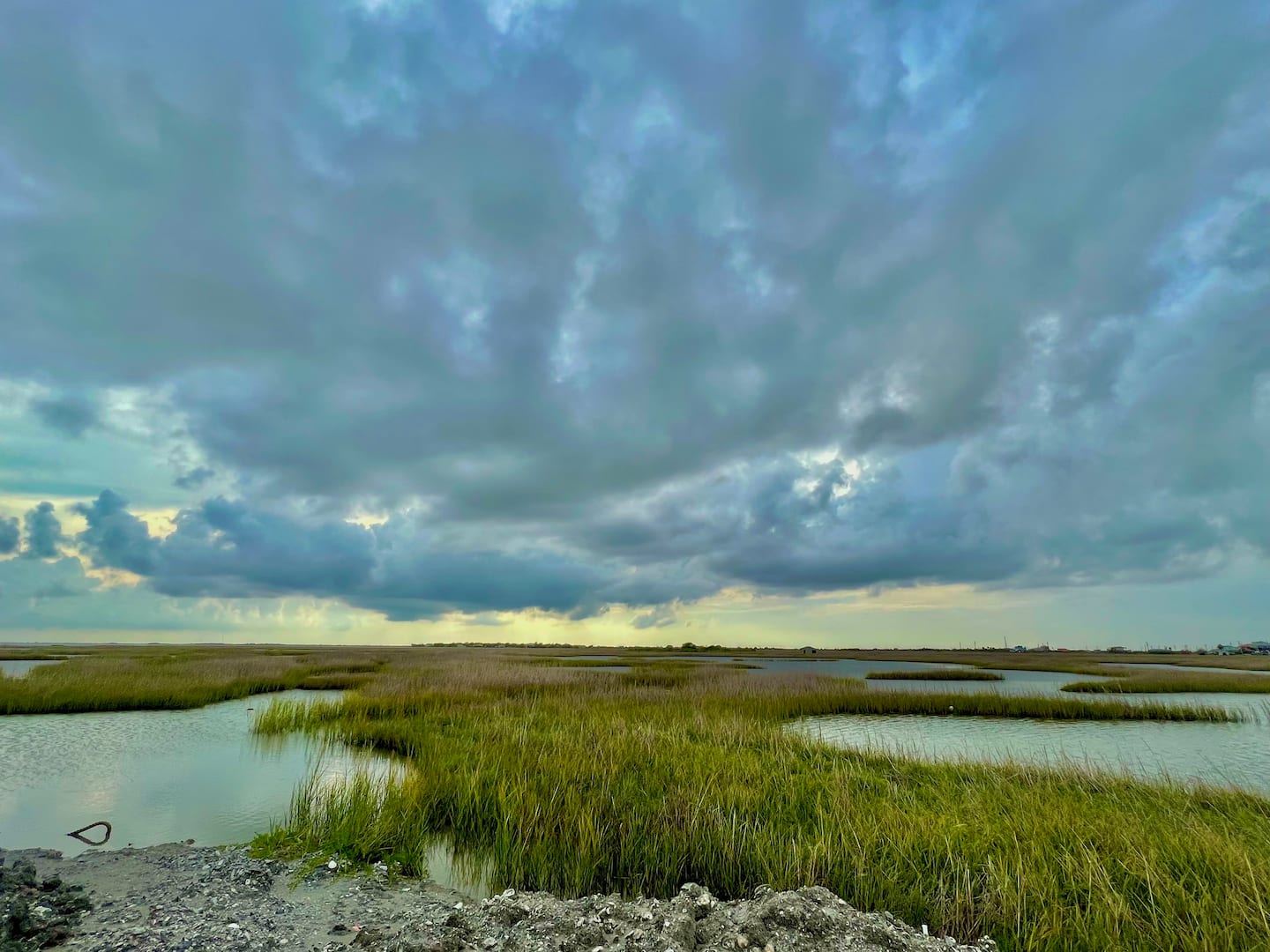 Living and kitchen area located on ground floor, with views of the ever-changing Matagorda Bay right out the front door. BBQ available.