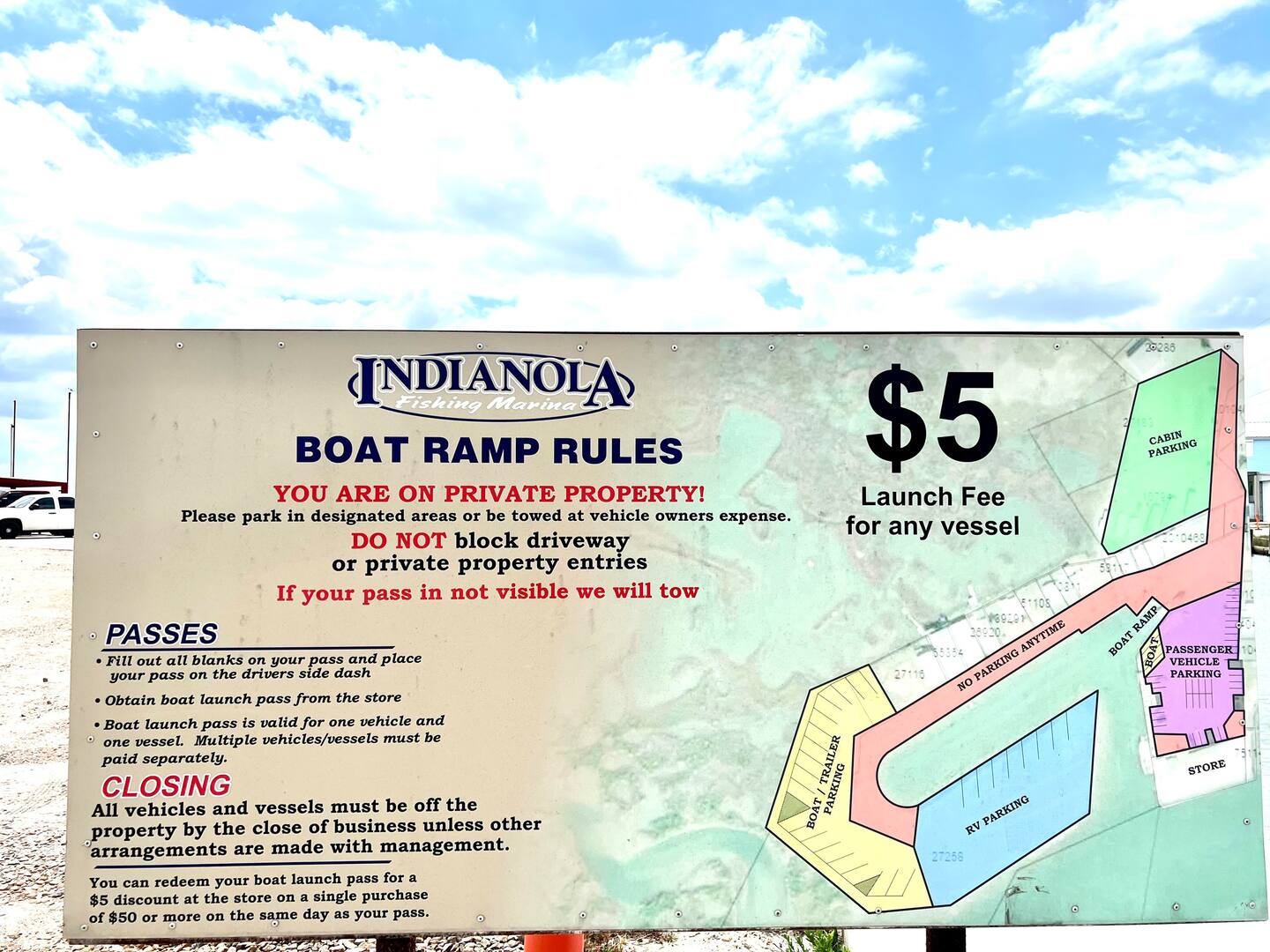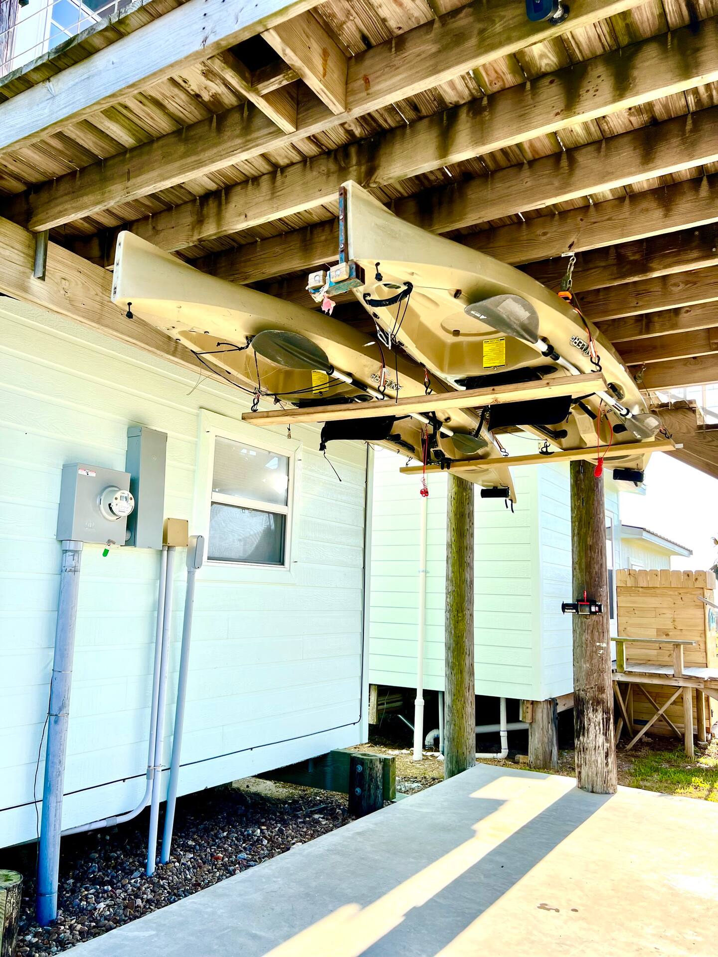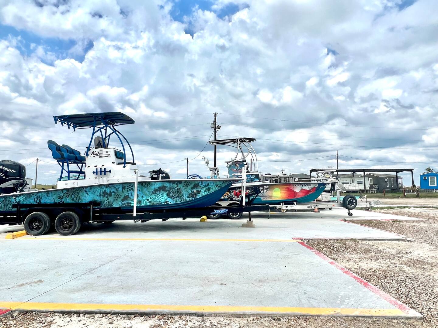 Kayaks are allowed to launch on S. Ocean Drive, about 3 houses from ours at the turn, at Indianola Fish Marina or into the bay at Magnolia Beach (you will need a trailer or truck bed to transport them. Boat parking in specific areas. I have been told the Marina allows overnight docking.