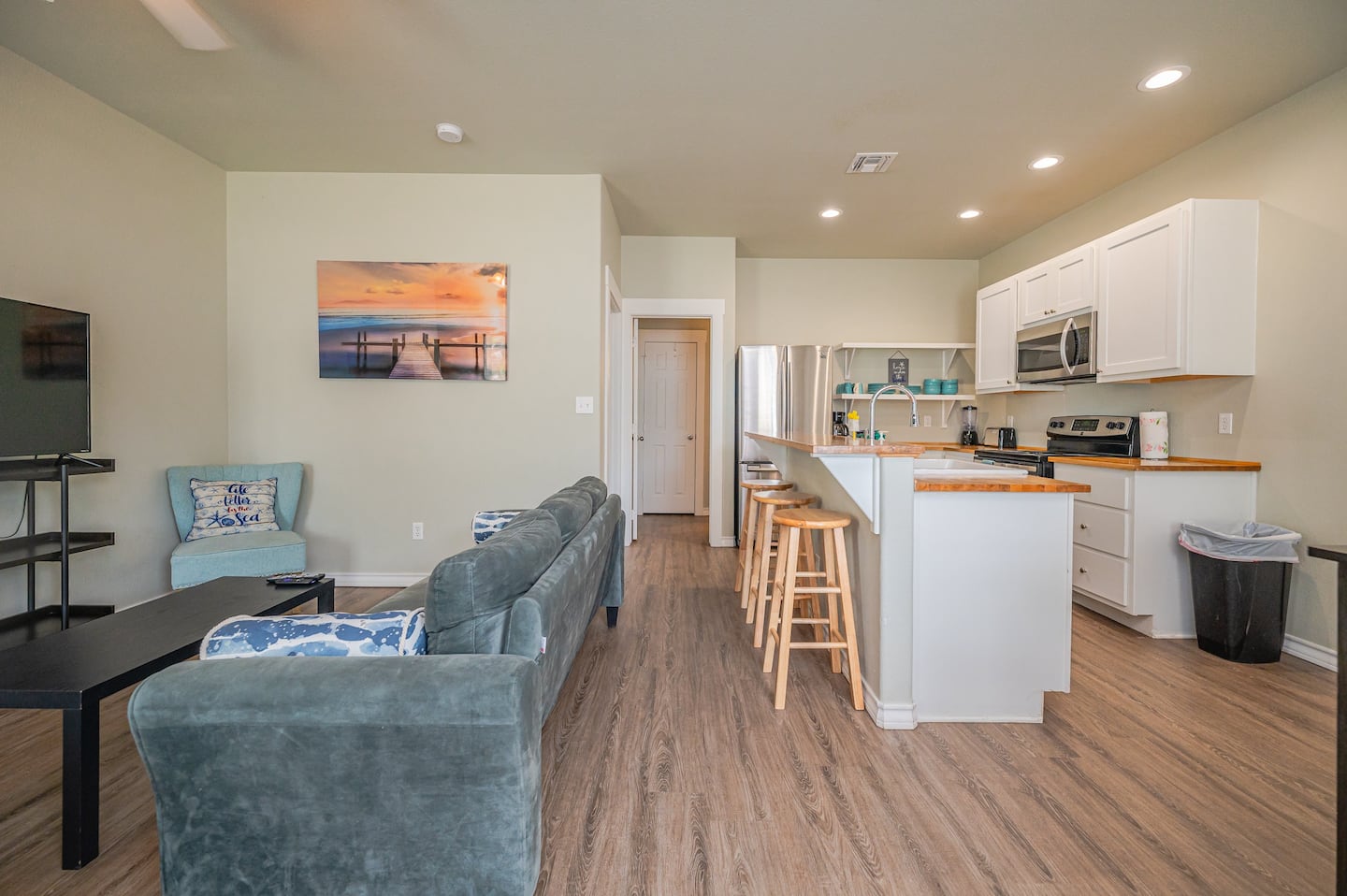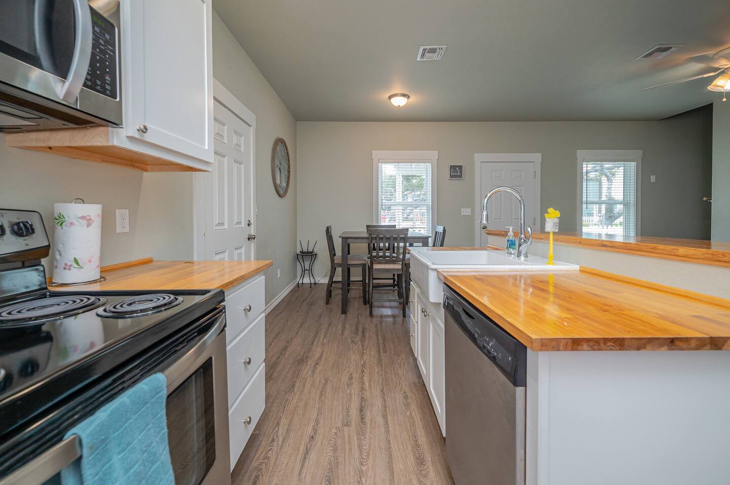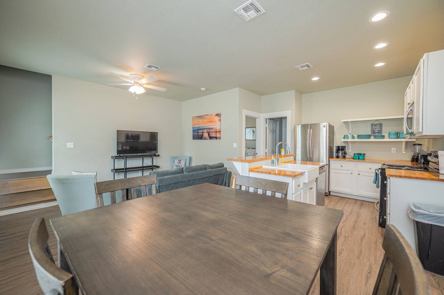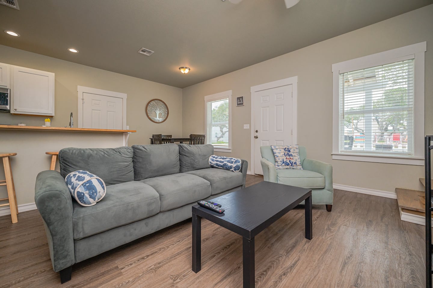 Welcome to Sea La Vie, a spacious coastal cottage with 3 bedrooms, 2 baths, and a bonus loft area. Fully furnished with a stocked kitchen, washer/dryer, and smart TVs in every room. Just a few steps away from the community pool, and located only 5.6 miles from Rockport Beach and 15 minutes from the ferry to Port Aransas.