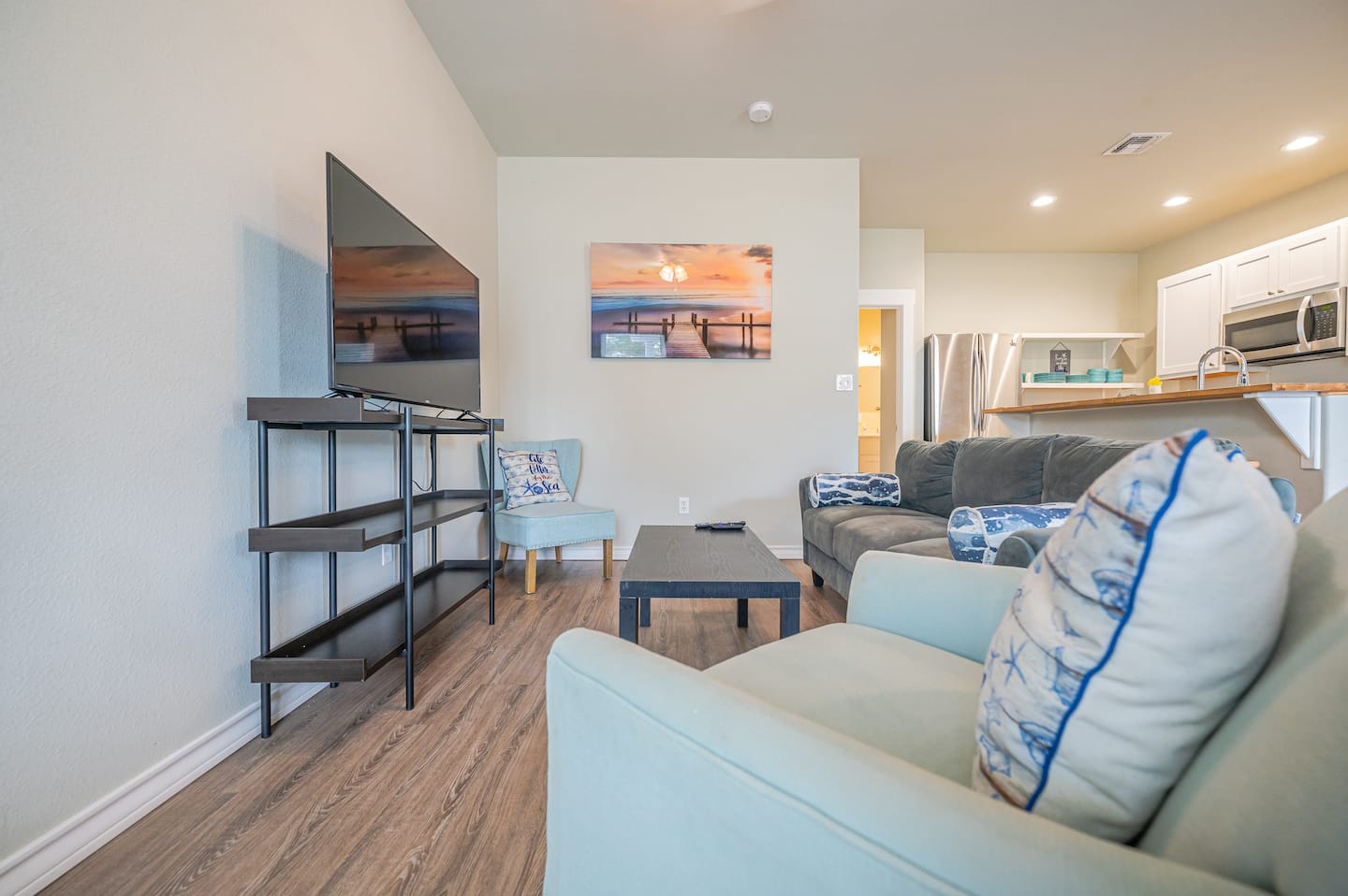 This was our first trip ever to Rockport and this was the first time I have loved where we stayed at any place on the Texas coast! The condo was super clean, spacious, with the great amenity of the pool just steps from the door. The pool came in handy on our second day because the ocean was very warm and full of jellyfish. My only suggestion would be to have a larger couch or sectional so everyone could sit in the living area but we made it work. Thank you for a fantastic first experience in Rockport!