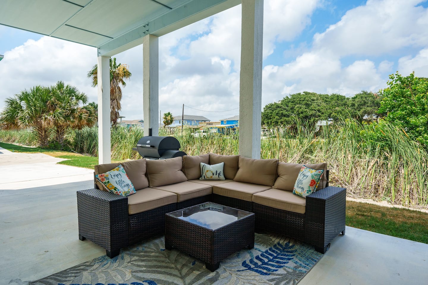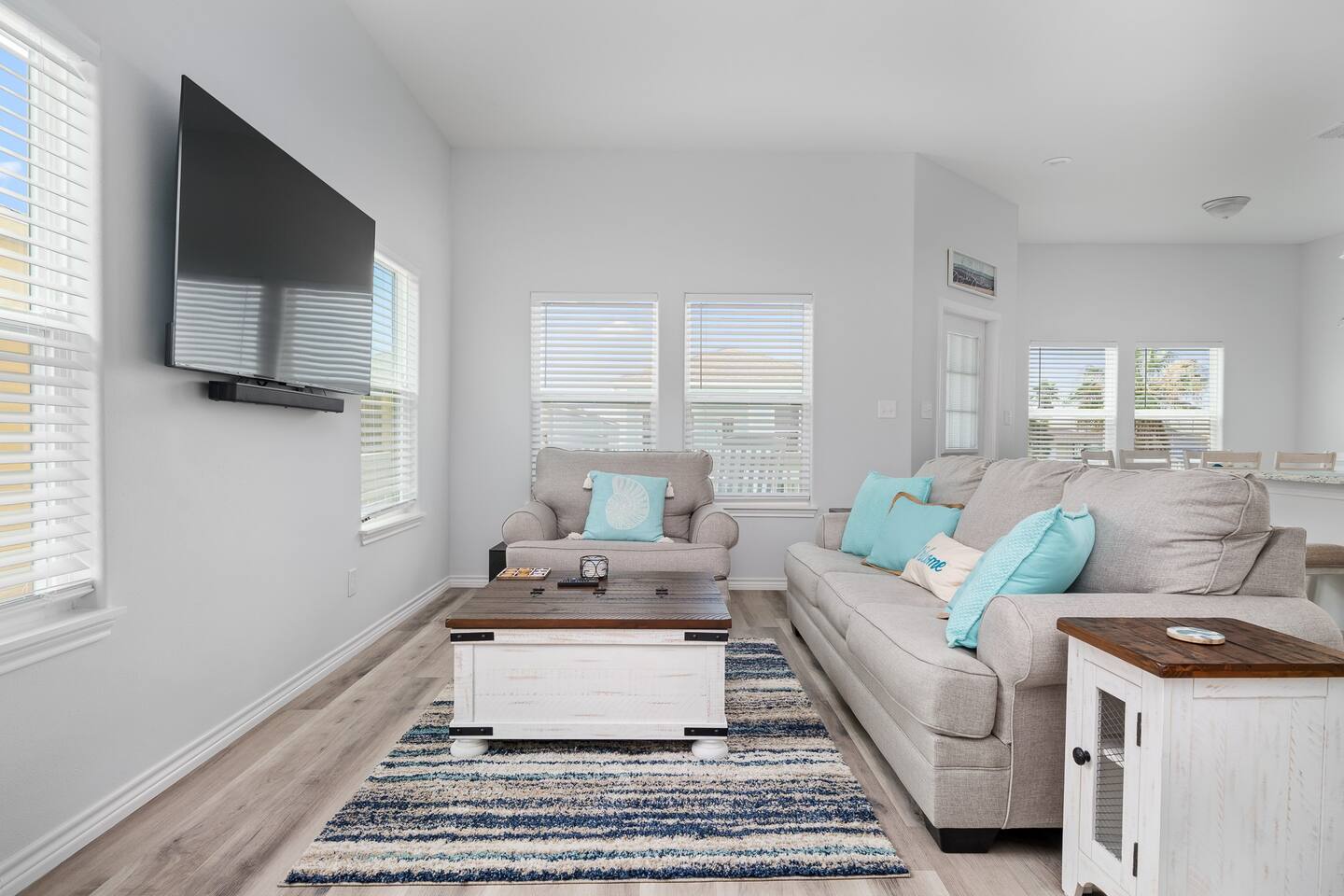 Experience the welcoming ambiance of The BlueFin Bay House, a delightful coastal residence situated in the Ocean Reef Community of Rockport, Texas. This charming home provides cozy coastal living and access to exceptional community facilities. Boasting two bedrooms and two full bathrooms, it can comfortably host up to eight guests. Situated between Rockport and Aransas Pass, it is just a few minutes away from public marinas, Rockport beach, and Port Aransas.