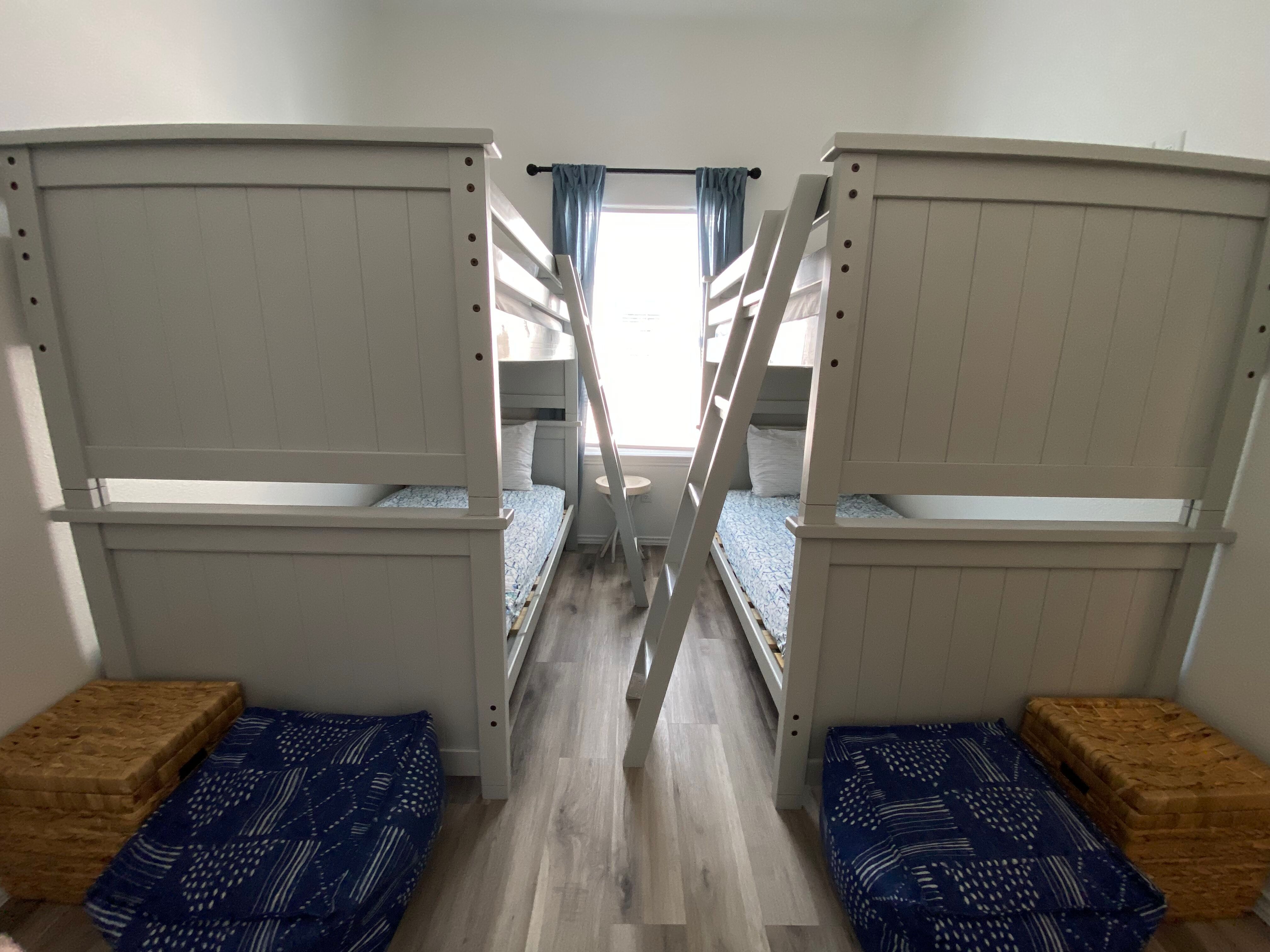 Bedroom 2: Bunk room with two twin-over-twin bunks (4 twin beds total)